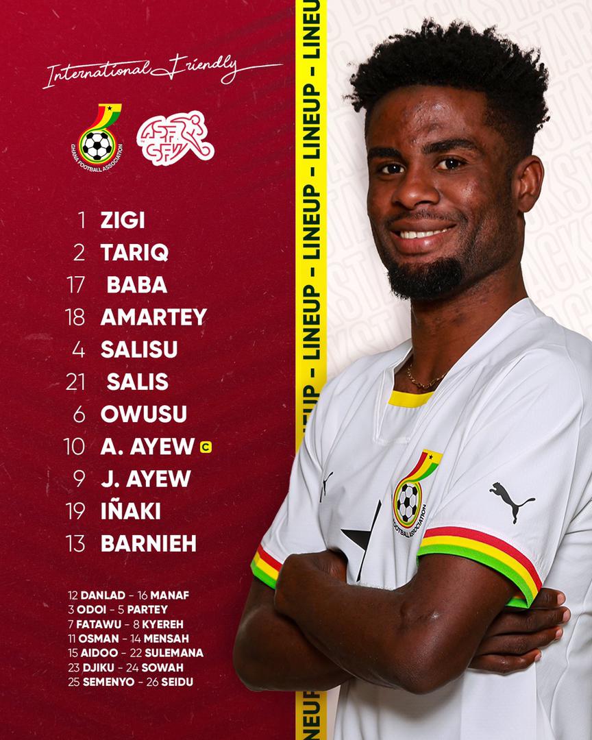Ghana coach Otto Addo has named Hearts of Oak youngster Daniel Afriyie Barnieh in the starting line up as Black Stars play Switzerland in a friendly ahead of 2022 Fifa World Cup to be staged in Qatar.