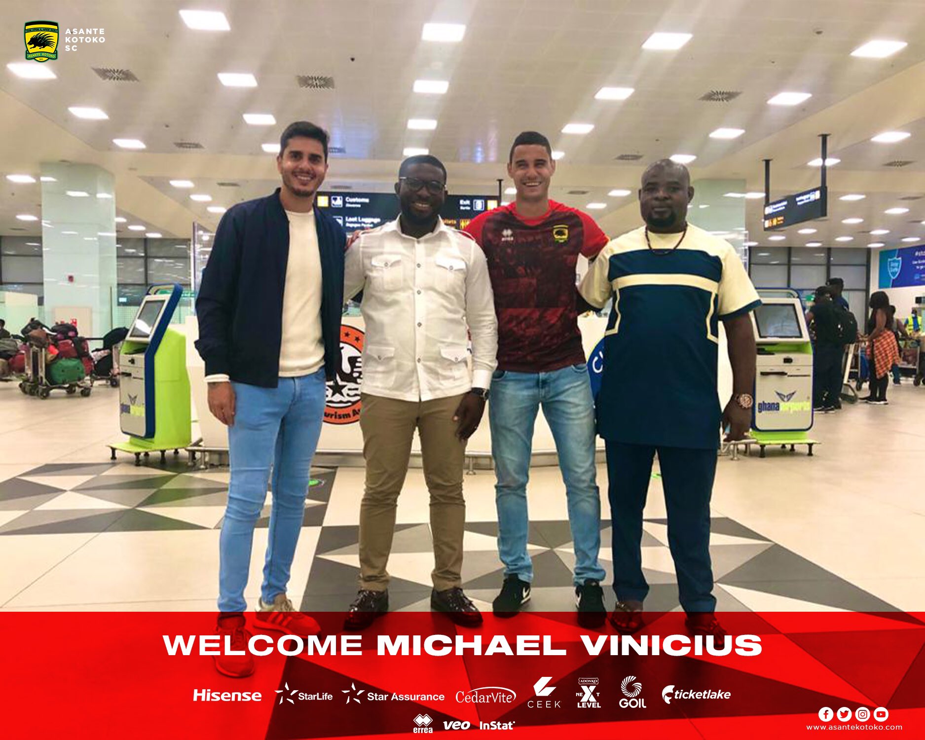 Asante Kotoko new striker Michael Vinicius ‘The Goal Monger’ has arrived in Ghana on Friday evening, AshesGyamera.com can confirm.