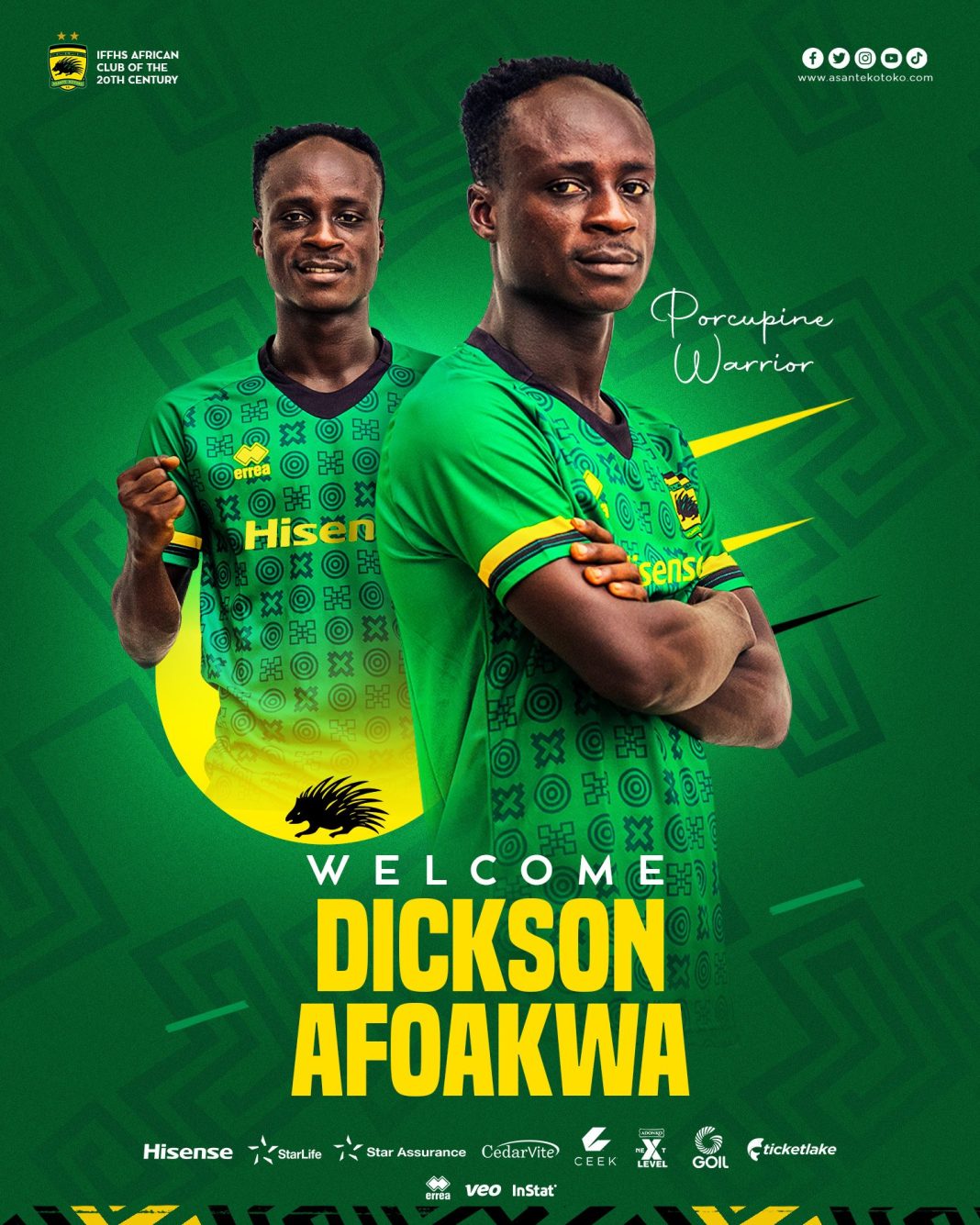 “DEAL DONE: We have completed the signing of winger Dickson Afoakwa. The offensive player joins as a free agent on a three-year deal,” a Kotoko statement read.