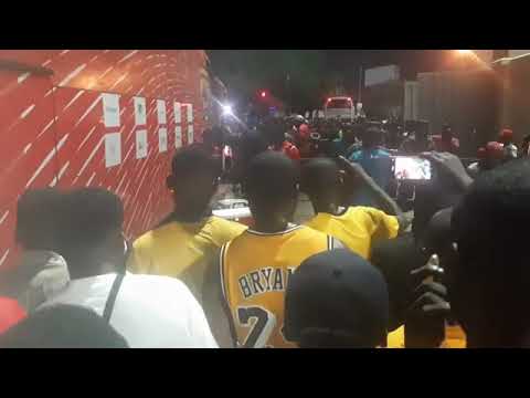 Mfegue, who was substituted in the course of the game due to injury concerns, joined his teammates to celebrate the win.