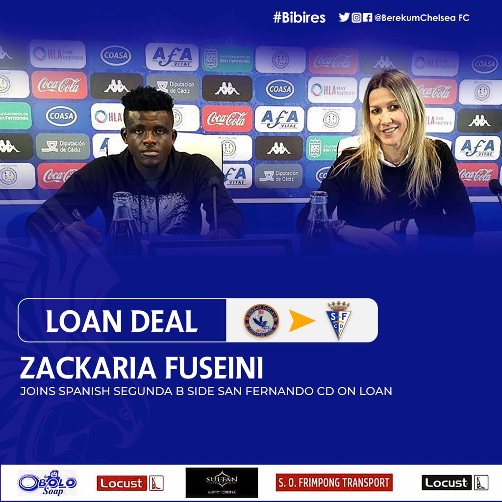 Berekum Chelsea captain Zackaria Fusieni has joined Spanish Segunda B side Fernando CD on loan for the 2020/21 season with an option to make the deal permanent.