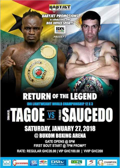 Come January 27, Ghana will witness yet another engrossed bout involving unsung hero-the ‘Game Boy’-Emmanuel Tagoe and Argentine journeyman-David Fernando Saucedo-(70-61-10Kos-6 losses,3 draws) in their much anticipated Super Lightweight battle at the Bukom Boxing Arena which is fast becoming the ‘Mecca of Ghana boxing ‘kind courtesy Baby Jet promotions.
