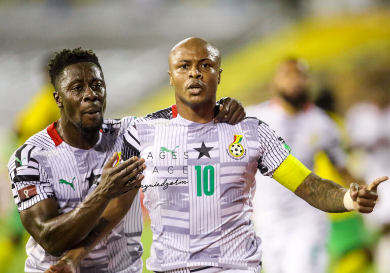 Andre Ayew partnered his junior brother Jordan Ayew and Kudus Mohammed in a 4-3-3 formation.