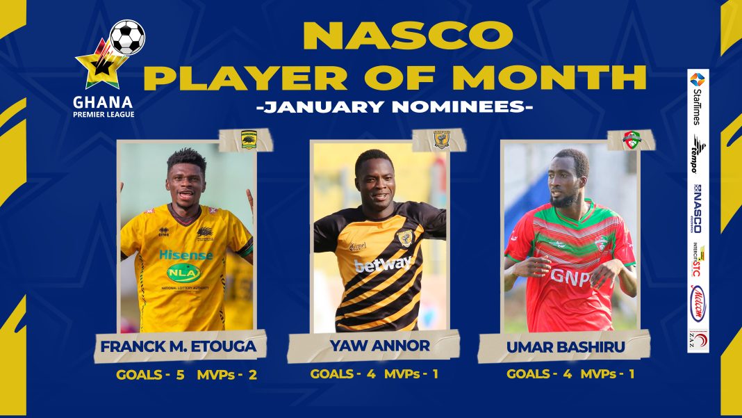 “Three players have been shortlisted for the Ghana Premier League Nasco Player of the Month award for the month of January,” a GFA statement read.