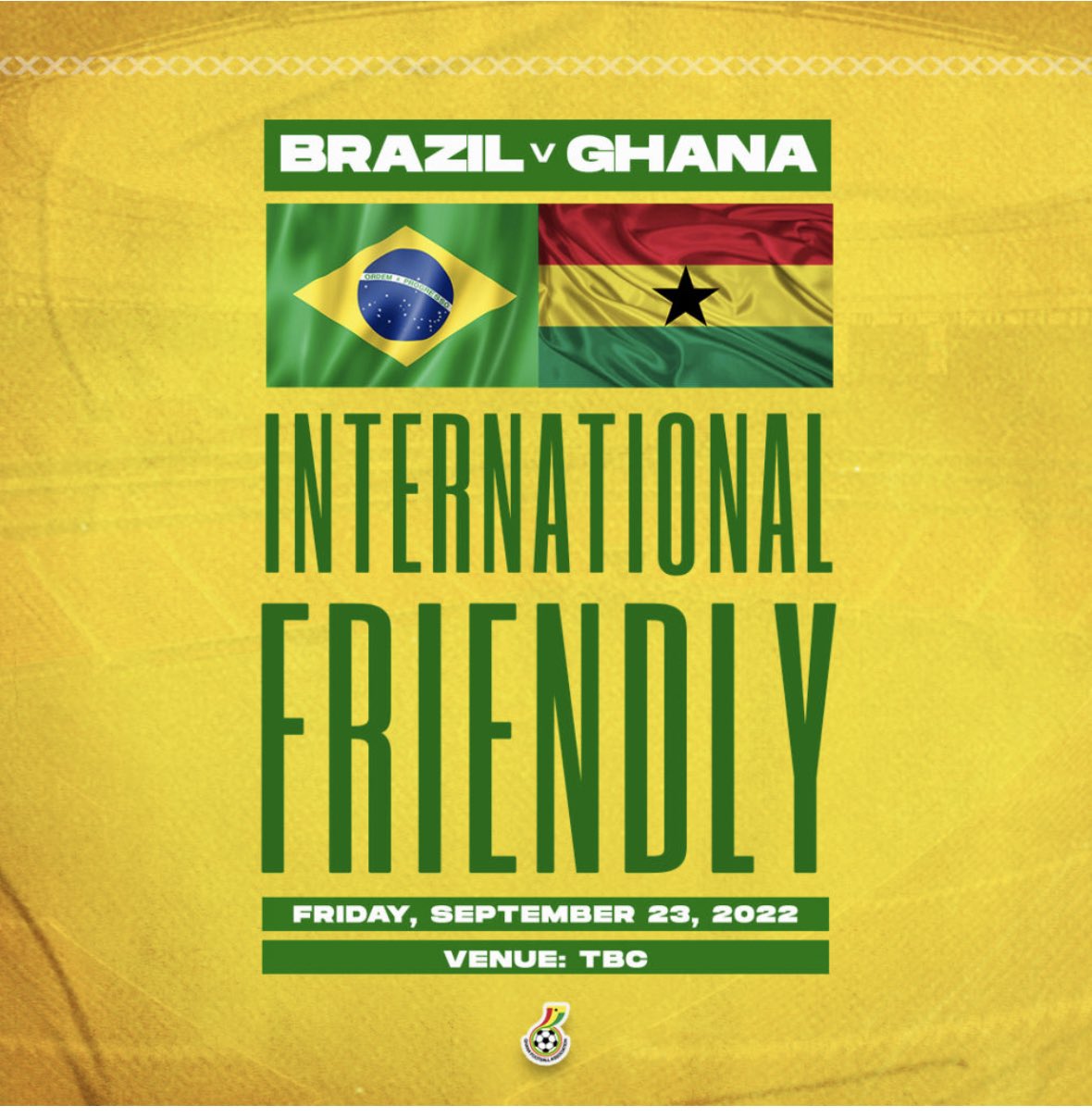Ghana has been billed to play Brazil in a friendly game ahead of 2022 Fifa World Cup in an unnamed stadium, AshesGyamera.com understands.