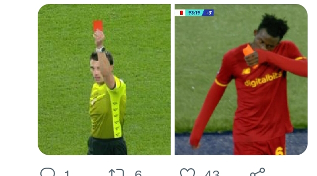 Ghana’s young striker Felix Afena-Gyan was shown a red card in AS Roma’s 2-0 home win over Spezia Calcio in Serie A on Monday.