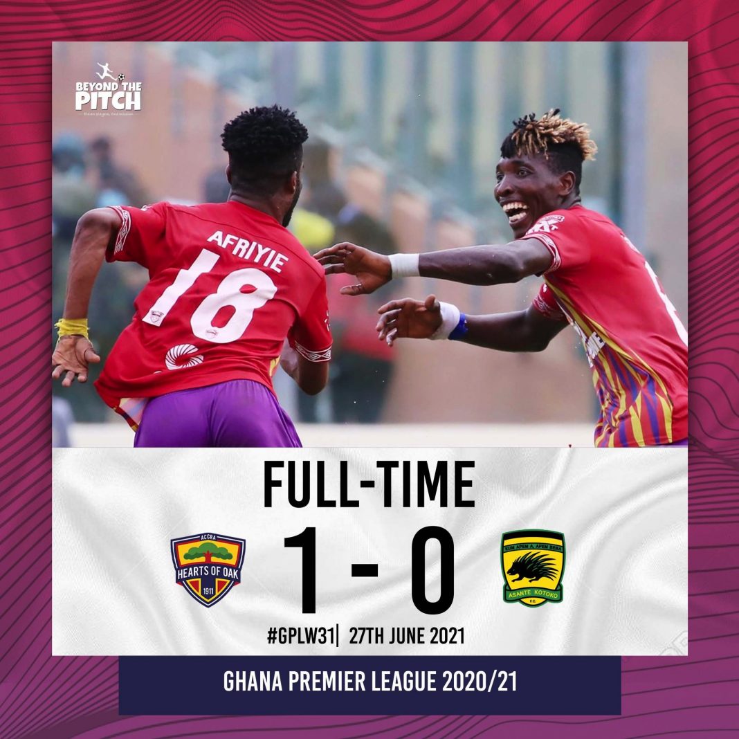 Hearts of Oak defeated Asante Kotoko 1-0 at the Accra Sports Stadium on Sunday thanks to Daniel Afriyie Barnie’s 65th minute strike. After several failed attempts, the Phobians got the bragging rights and could even ran away with the league trophy.