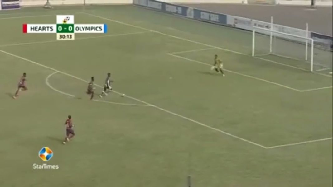 Olympics found an opening by the 30th minute as Razak Yussif connected a long pass, raced through Hearts’ midfield and perfectly slotted the ball beyond the reach of onrushing goalkeeper Richmond Ayi.