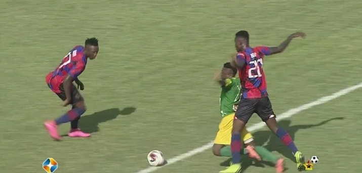 Emmanuel Gyamfi was brought down on the edge of Legon’s box after he broke free following a through ball from Yahaya.
