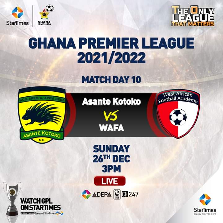 Asante Kotoko host West African Football Academy at the Baba Yara Sports Stadium on matchday nine of Ghana Premier League.