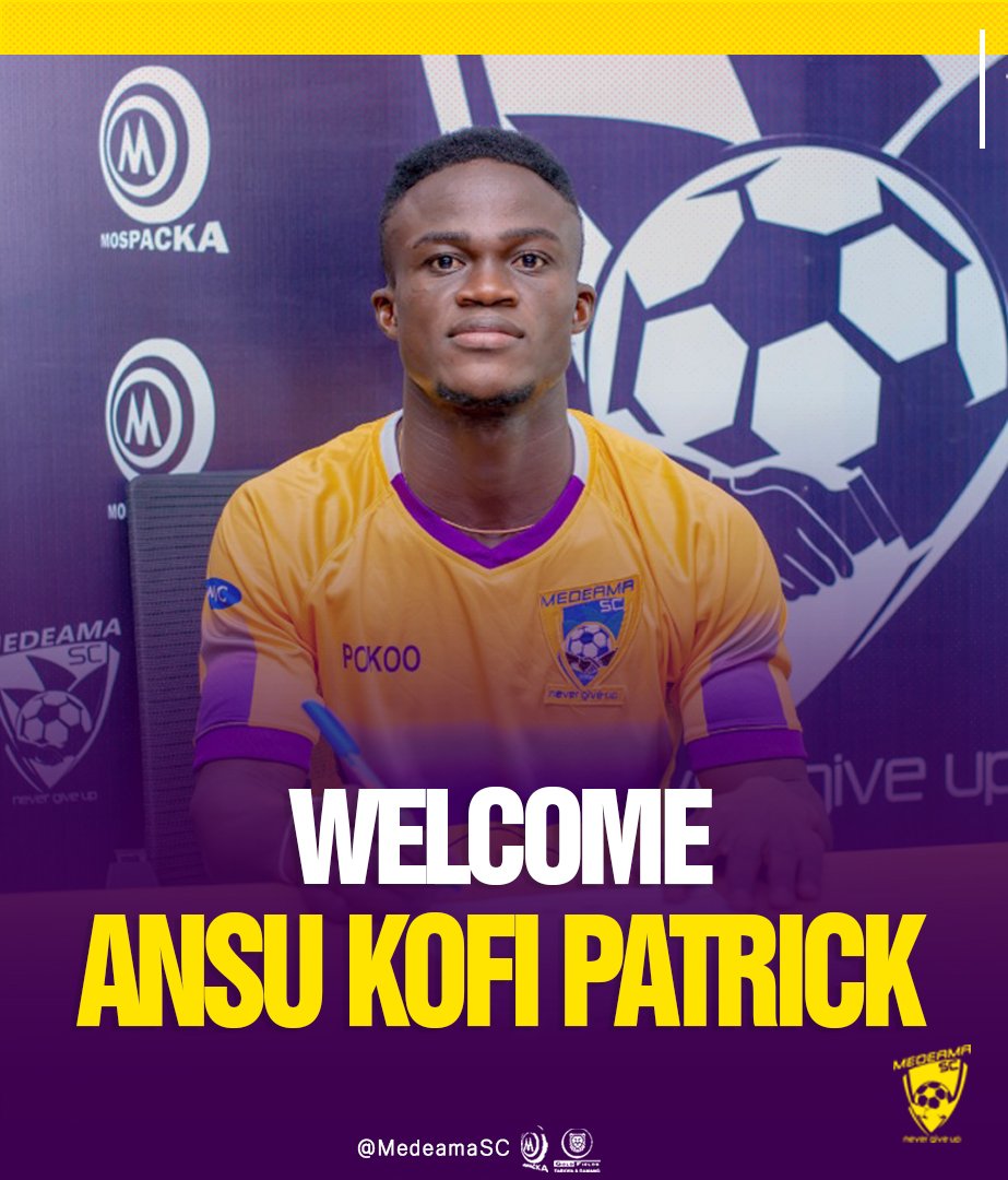 “We are delighted to announce the signing of forward Kofi Ansu Patrick from BerekumArsenal,” an official statement from Medeama read.