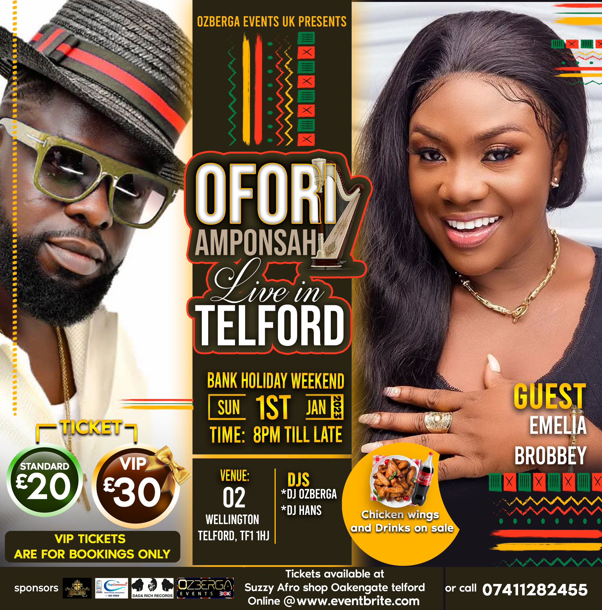Ghana’s High-Life superstar Ofori Amponsah has been billed to entertain Ghanaians in United Kingdom’s town of Telford on New Year Day in 2023.