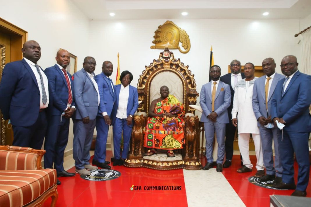 The FA president Kurt Okraku and some members of the association’s executive council paid a courtesy call on Otumfuo at his Manhyia Palace in Kumasi on Wednesday.