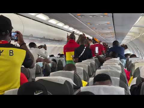 Video: Ghanaian supporters dish out HOT JAMA in a flight from Yaounde to Garoua to support Black Stars against Comoros